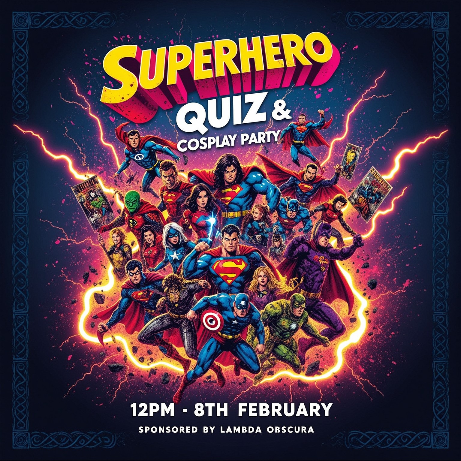The Lambda Obscura superhero Quiz and Cosplay competition happening at the Lambda House, 12pm, 8th February
