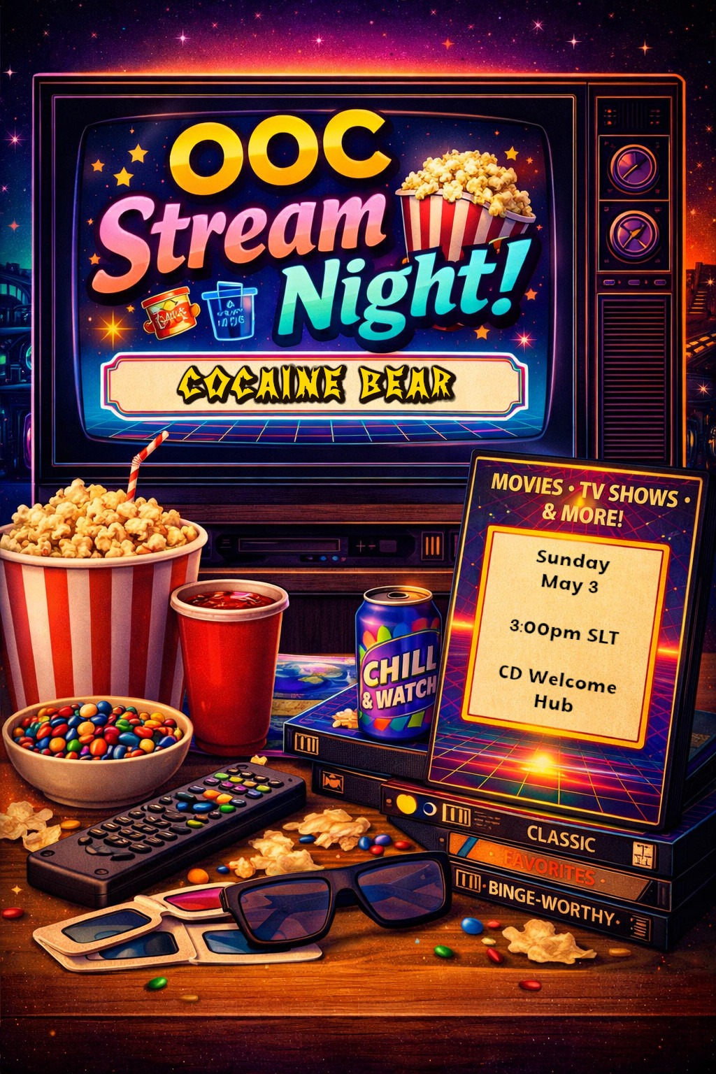 Join us for a casual OOC stream night. Come make friends, binge watch, and have fun!