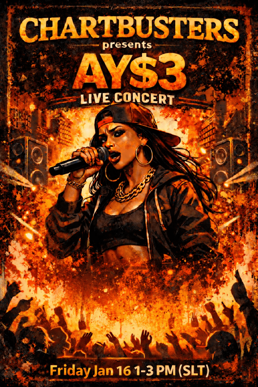 Chartbusters is sponsoring a music performance by artist AY$3, known for her hip-hop style, honest lyricism, and insurrectionary content. Stage setup near Chartbusters. Crack open...