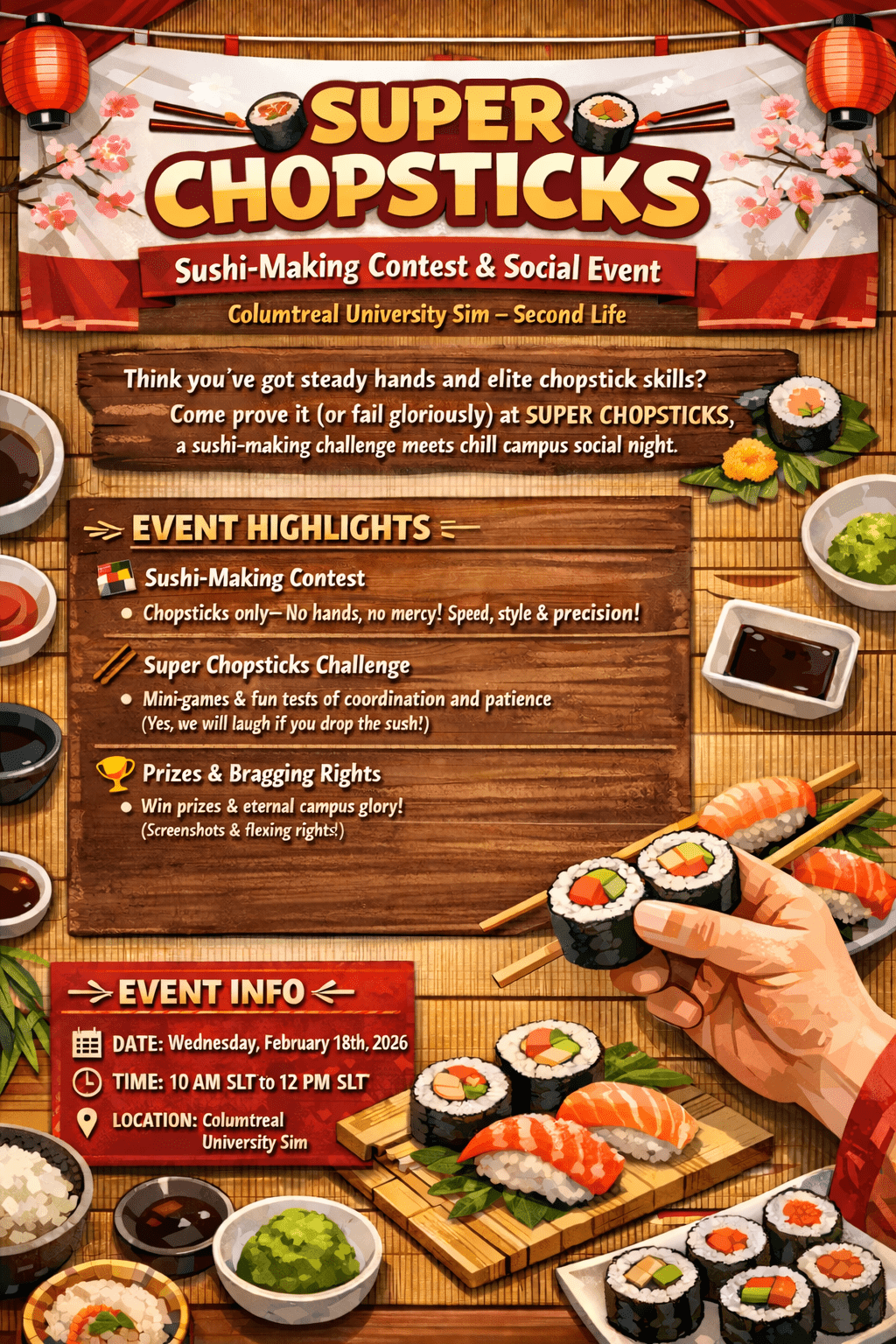 We are back in the new year to bring you a sushi making contest, drinks on the house of course. there will be a judged...